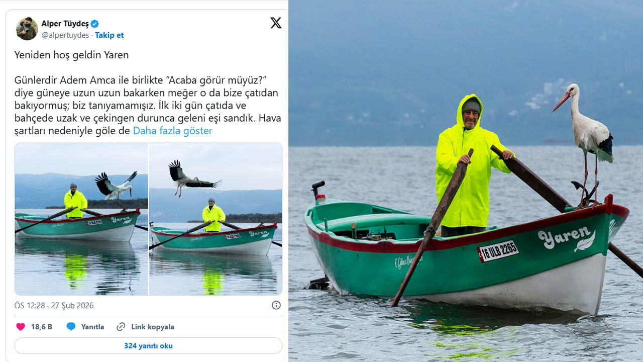 İlk günlerde köydeki yuvada görülen leyleğin Yaren’in eşi Nazlı olduğu düşünülse de, bu sabah Adem Amca’nın teknesinde gerçekleşen yakın temasla gelen leyleğin Yaren olduğu kesinleşti. Tüydeş, X (Twitter) üzerinden yaptığı paylaşımda, “Merak edenlere, soranlara, bir kuşla baharı bekleyenlere müjdeler olsun. Buluşma 15. yılda da gerçekleşti. Yeniden hoş geldin Yaren!” ifadelerini kullandı.
