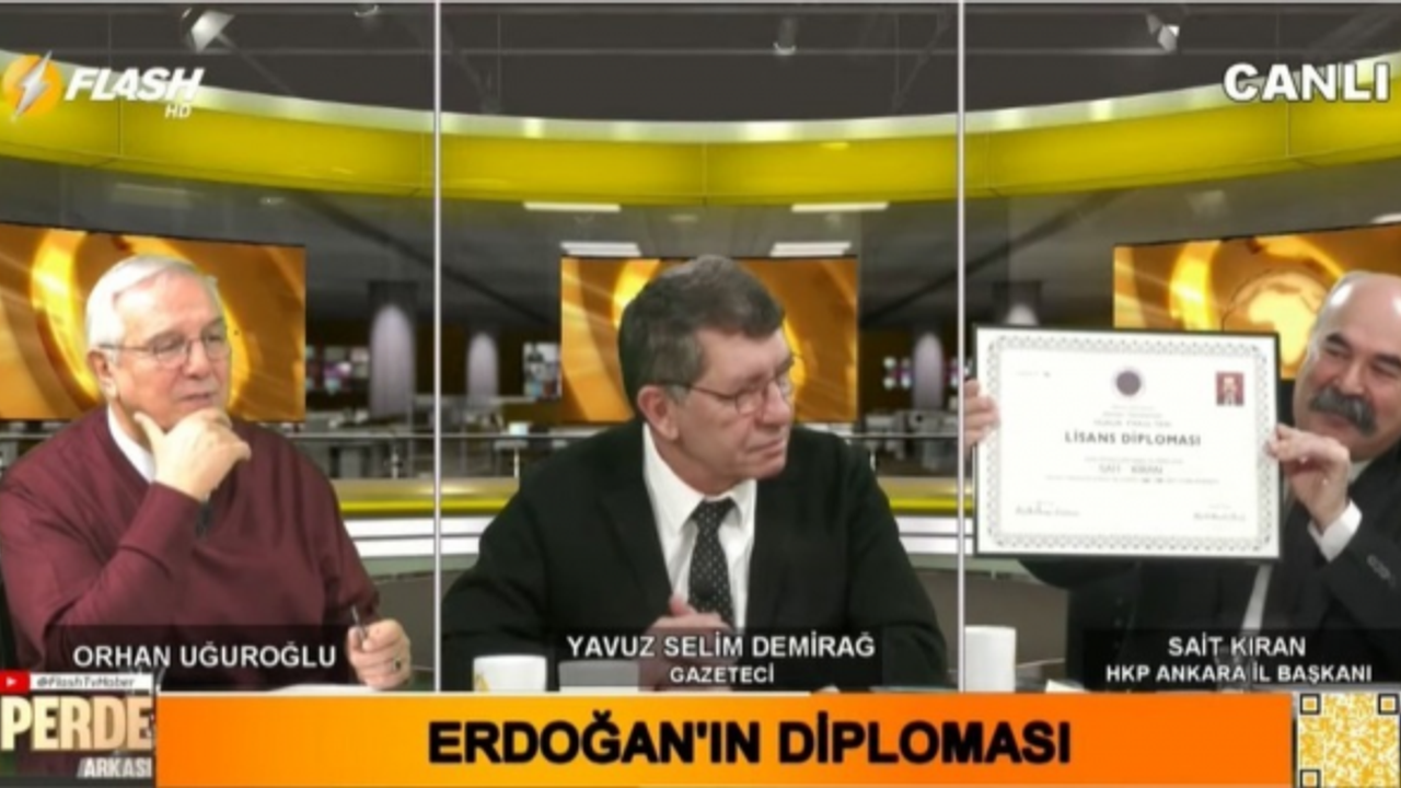 Flash TV’de konuşan Halkın Kurtuluş Partisi (HKP) Genel Sekreter Yardımcısı ve Ankara İl Başkanı Av. Sait Kıran, AKP’li Cumhurbaşkanı Recep Tayyip Erdoğan’ın diplomasıyla ilgili hukuki süreç hakkında bilgi verdi. Kıran, “Mevcut Cumhurbaşkanı, Cumhurbaşkanı olma sıfatını taşımıyor. Çünkü diploması yok” dedi.