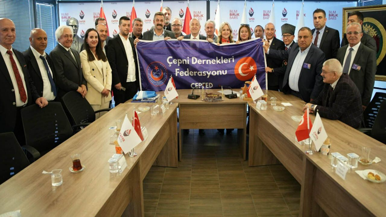 Çepni Dernekleri Konfederasyonu Başkanı Muhammet Arif Genç ve beraberindeki heyet, Zafer Partisi Genel Merkezi’nde Genel Başkan Ümit Özdağ ile bir araya geldi.