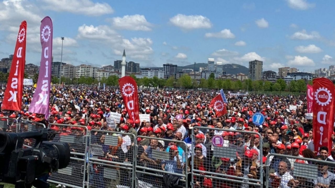 Ardından DİSK Başkanı Arzu Çerkezoğlu, "Hayatta kalmak için, bu düzeni değiştirmek için hep birlikte mücadele veriyoruz. Bu meydanda zamları hayır diyenler var, açlık sınırının altına gerileyen asgari ücretin artırılması için mücadele verenler var. Bu meydanda her türlü eşitsiziliğe karşı eşitlik talebiyle mücadele eden, artan şiddete rağmen bir gece yarısı çıkarılan kararnameyle çıkılan İstanbul Sözleşmesi’ne sahip çıkan kadınlar var" diyerek alandakilere seslendi.