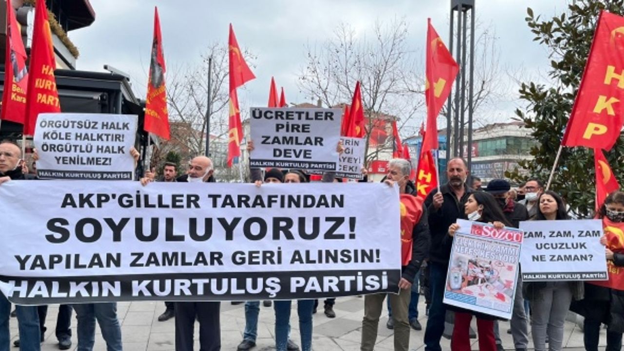 Halkın Kurtuluş Partisi (HKP), elektrik, doğal gaz ve akaryakıta yapılan zamları İstanbul Sarıgazi’de fatura yakarak protesto etti.