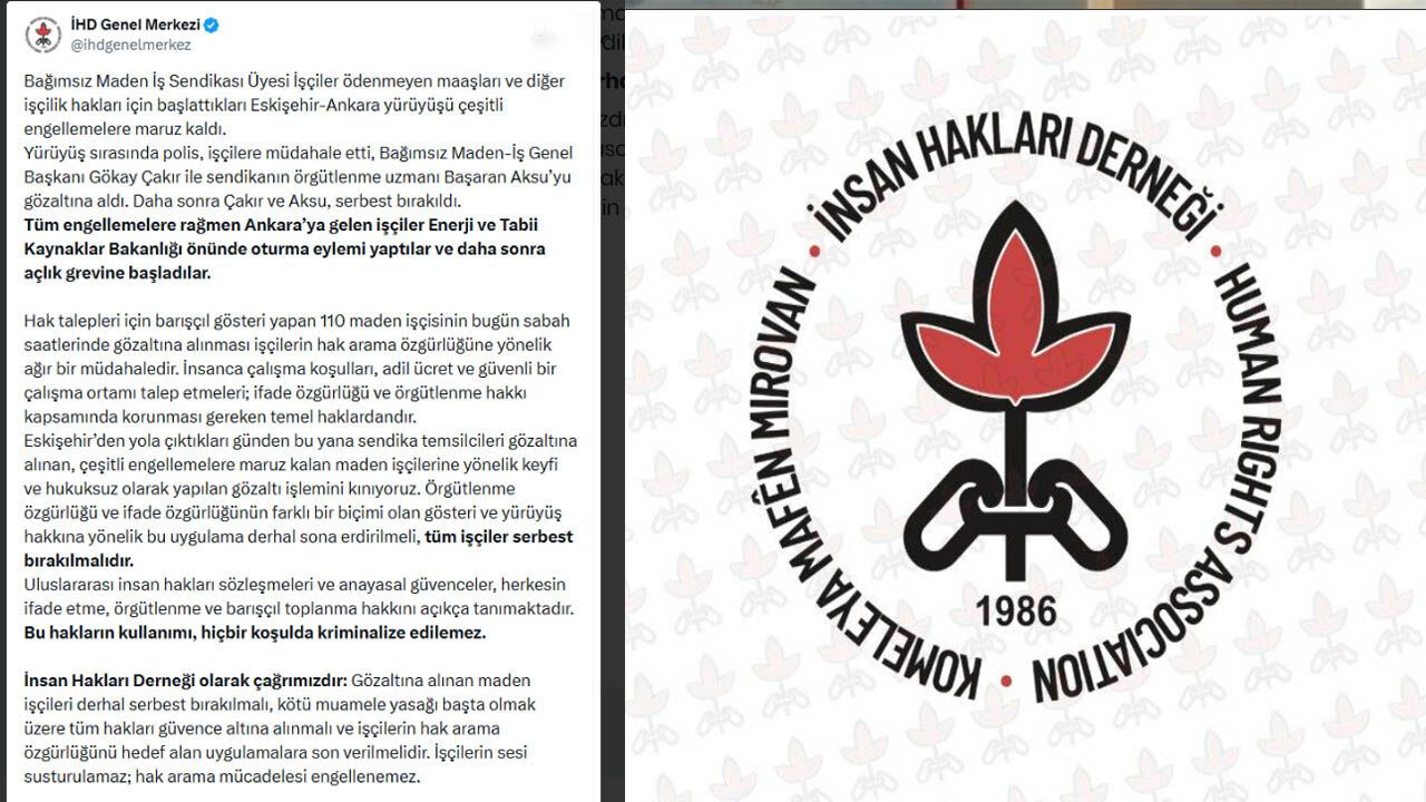 Açıklamada, gösteri ve yürüyüş hakkının anayasal bir güvence altında olduğu, işçilerin sesinin bu tarz müdahalelerle susturulamayacağı belirtildi. "İşçilerin hak arama mücadelesi engellenemez" diyen İHD, kötü muamele iddialarının takipçisi olacaklarını ve işçilerin bir an önce evlerine, ekmek kavgalarının başına dönmesi gerektiğini duyurdu.