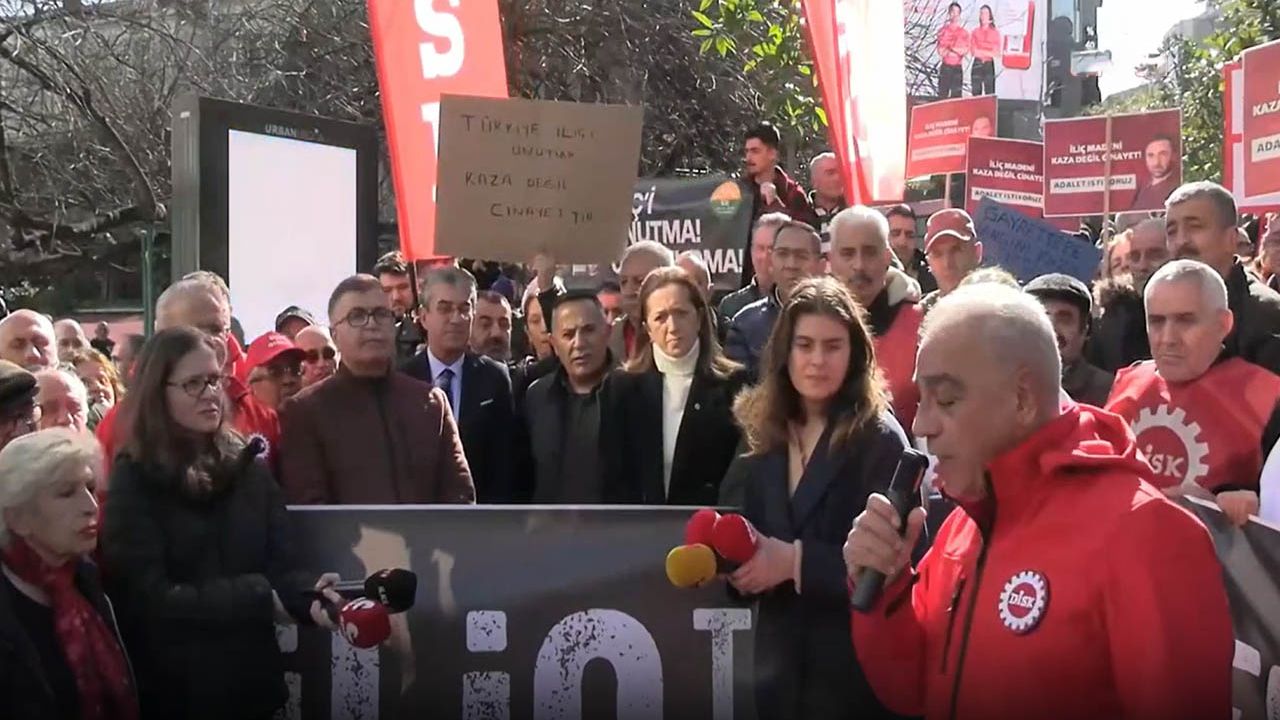 DİSK Genel Başkanı Arzu Çerkezoğlu, CHP Grup Başkanvekili Gökhan Günaydın ve KESK Eş Genel Başkanı Ahmet Karagöz, facianın bir “kaza” değil, işçi hayatının sermaye hırsı nedeniyle hiçe sayıldığı bir “katliam” olduğunu vurguladı.