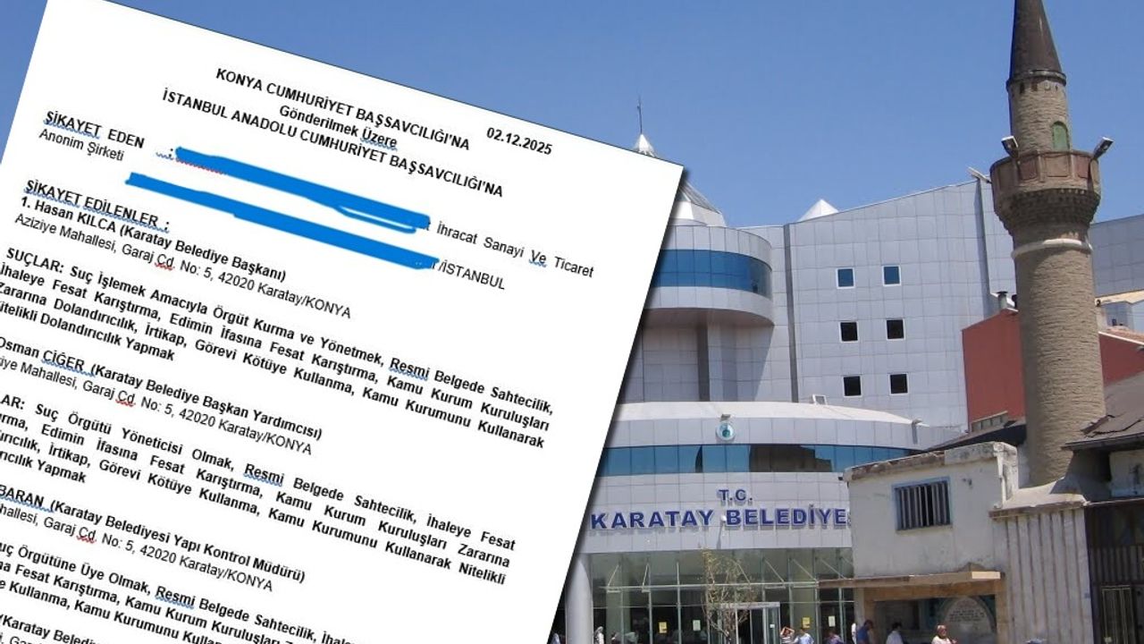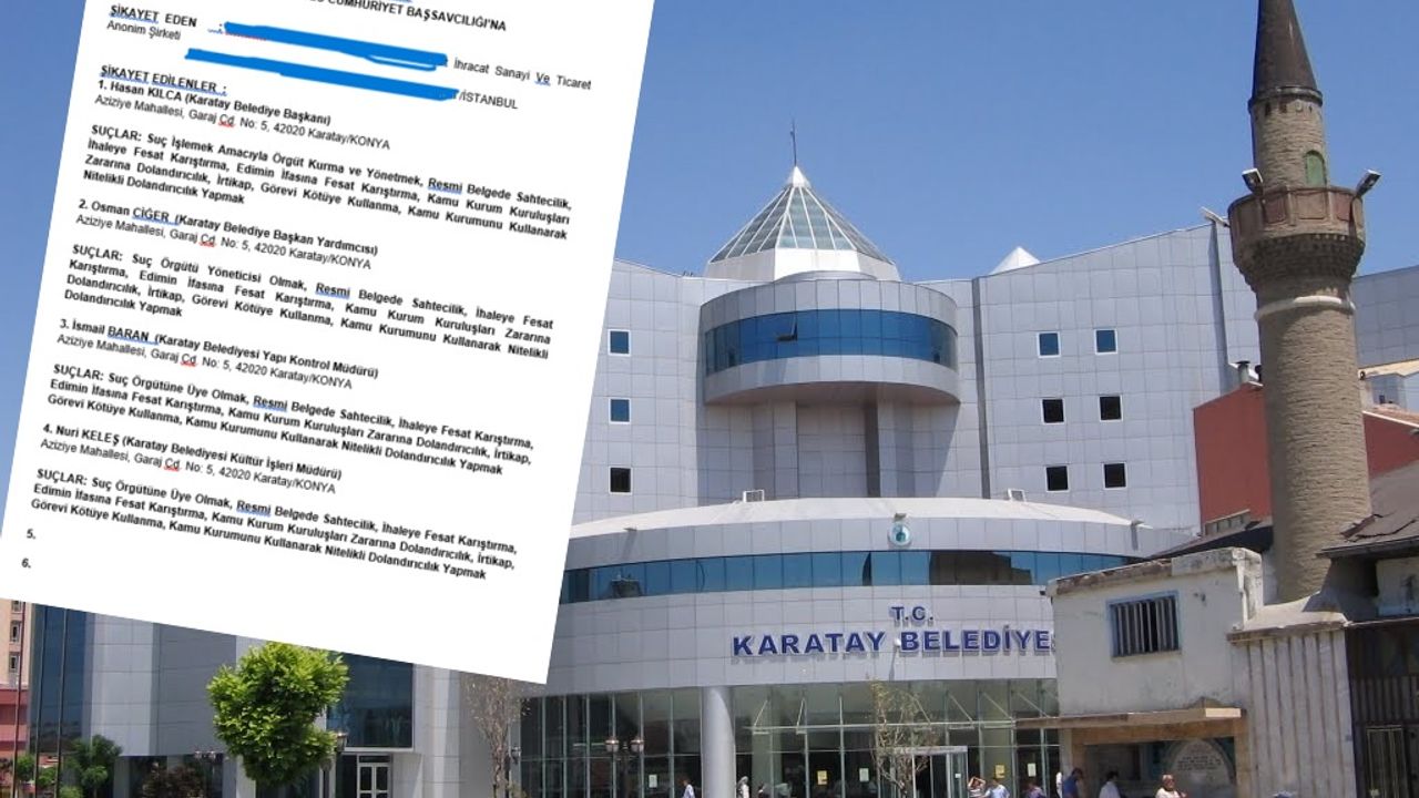 AKP'li Konya Karatay Belediyesi’nin üst düzey yöneticileri hakkında, İstanbul merkezli bir şirket tarafından suç örgütü kurmaktan ihaleye fesat karıştırmaya kadar uzanan çok ağır suçlamalarla suç duyurusu yapıldı. Başvuruda belediye başkanı Hasan Kılca ve yöneticilerin kamu kaynaklarını sistematik şekilde zarara uğrattığı iddia edildi.