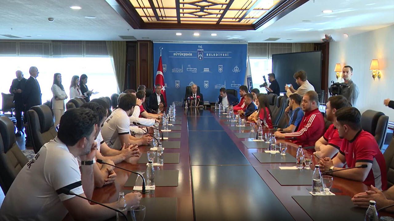 Avrupa Güreş ve Halter Şampiyonaları’nda Türkiye’nin göğsünü kabartan dev kadro, ASKİ Spor Kulübü Genel Koordinatörü Abdullah Çakmar eşliğinde Mansur Yavaş’ın konuğu oldu. 13. altın madalyasını boynuna takan efsane güreşçi Rıza Kayaalp ve halterin genç yıldızı Furkan Özbek’in de aralarında bulunduğu heyete seslenen Yavaş, "ASKİ Spor olarak Türk sporuna damga vurdunuz" sözleriyle takdirini dile getirdi.