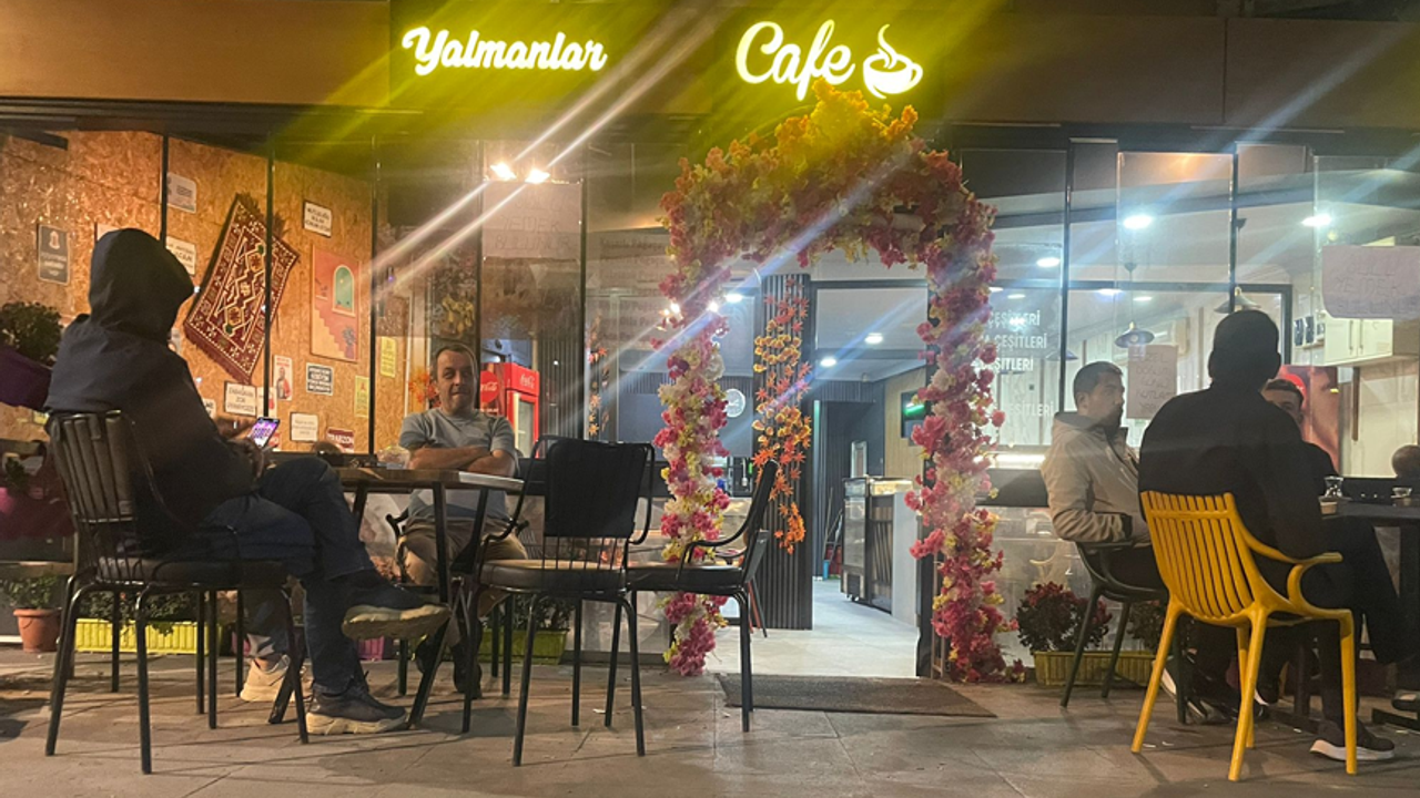 Dışarıdan bakıldığında bile sıcaklığını hissettiren Yalmanlar Cafe, özellikle akşam saatlerinde dikkat çekici bir görünüme sahip. Mekanın parlak sarı neon tabelası, yolu aydınlatırken; girişi süsleyen canlı çiçekli kemer, misafirleri adeta bir bahçe kapısından içeri davet ediyor. Kaldırıma yerleştirilen rahat sandalyeler ve masalar ise, kafe sahiplerinin vurguladığı samimi ve içten atmosferi dışarıya taşıyor. Bu detaylar, Yalmanlar Cafe'yi Seyrantepe'de hem lezzet hem de huzur arayanlar için cazip bir buluşma noktası haline getiriyor.