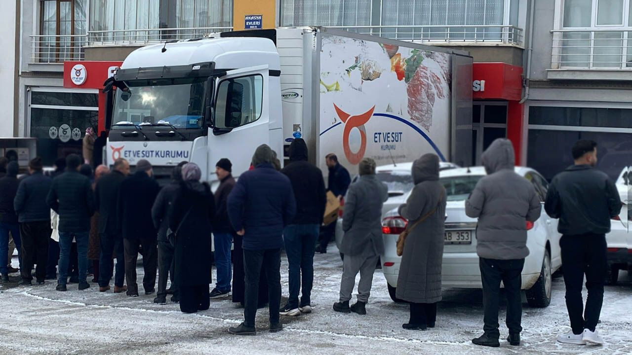 Yozgat’ta yüzlerce vatandaş, Et ve Süt Kurumu (ESK) mağazasında ucuz et alabilmek için eksi 4 derece soğuk ve kar yağışına rağmen sabah saat 07.00’den itibaren sıraya giriyor. Saat 09.00’da mağazanın kapıları açılıyor ve satışlar başlıyor.